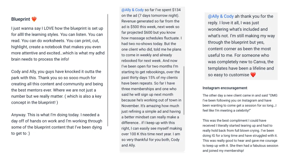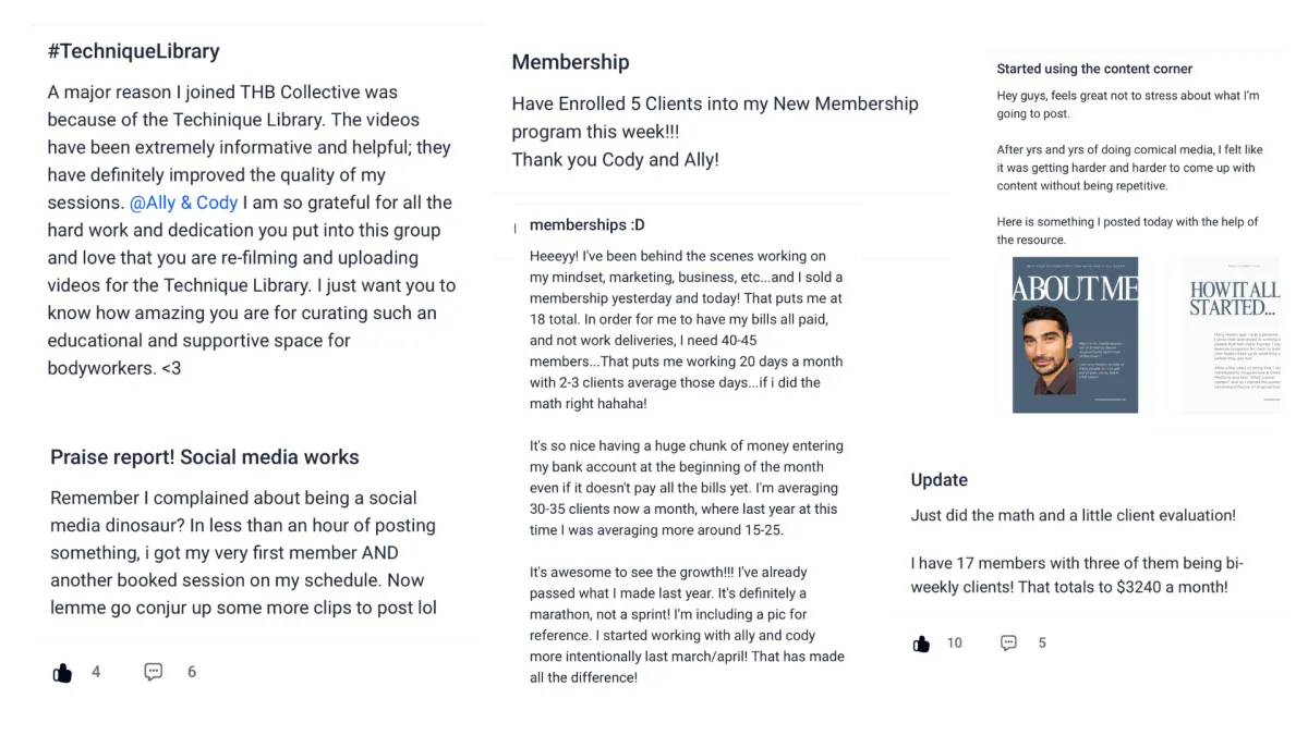 Let’s face it, doing this alone sucks. Inside this group, you’ll get support, answers, and the opportunity to connect with a community of bodyworkers who are serious about growing their practice and staying in the game long-term. It will also help keep you up to date on everything happening inside the Two Hearts Bodywork Collective. This exclusive group can be accessed via app or browser!